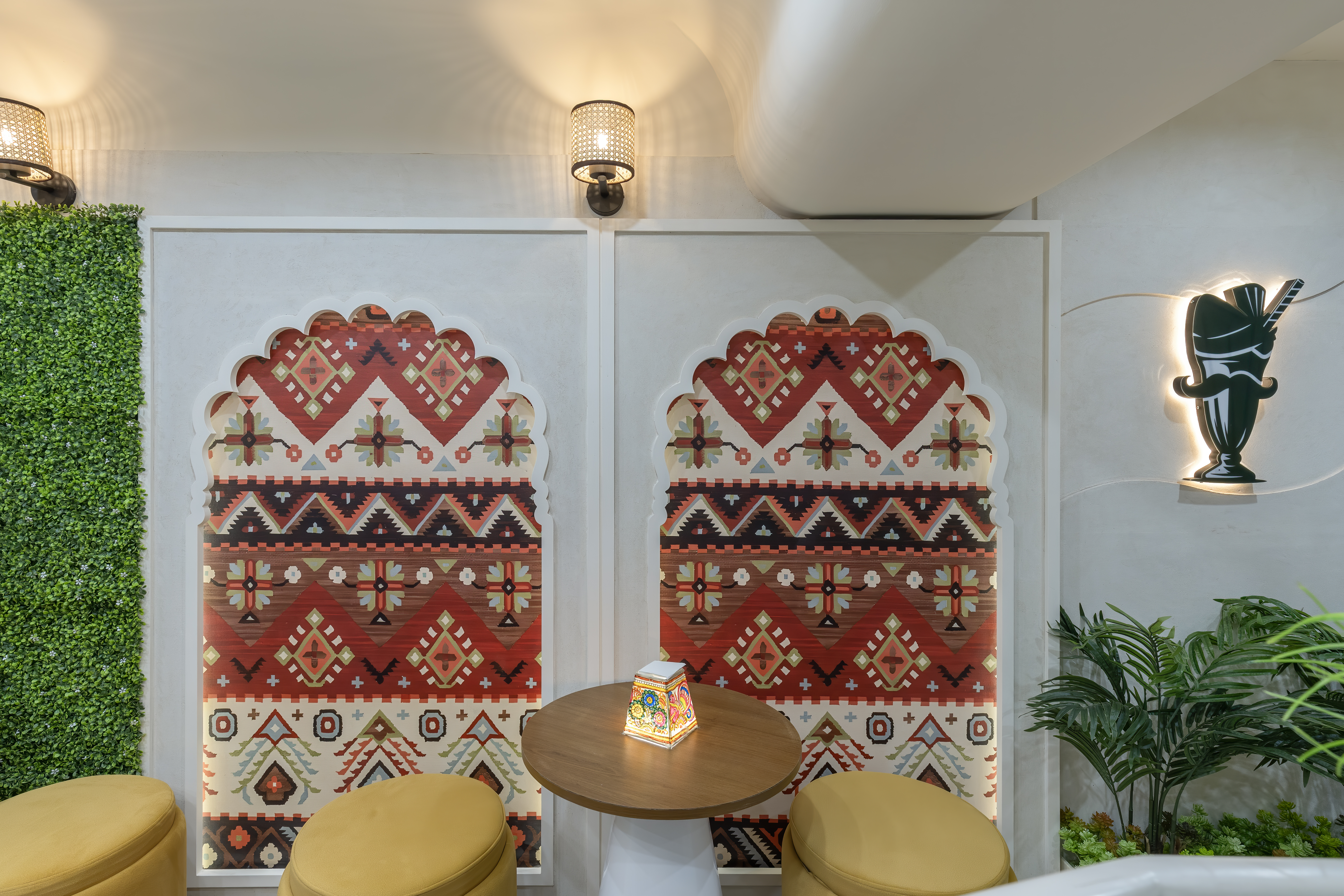 A café that celebrates community and nostalgia, reinterpreting Marwari heritage into a warm, textured, modern space.